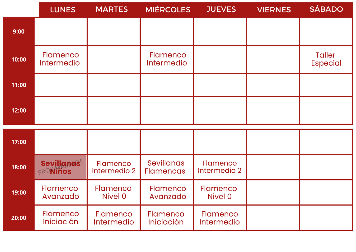 *El espacio se rige por el calendario escolar de la Comunidad de Madrid, reservándose el derecho de modificar las fechas lectivas/festivas.